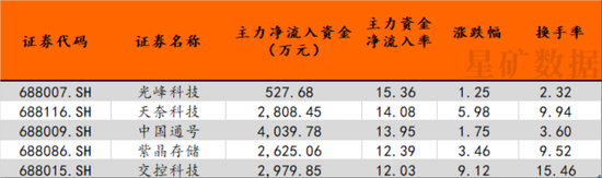 今日主力资金净流入的科创板个股共有48只,光峰科技(24.260,0.30,1.25%)主力资金净流入527.68万元,主力资金净流入率居首;天奈科技(36.350,2.05,5.98%)、中国通号(6.390,0.11,1.75%)紧随其后。主力资金净流出的科创板个股共49只,南新制药(43.940,-1.14,-2.53%)净流出率最高,共流出4445.48万元,其次是祥生医疗(72.890,-7.10,-8.88%)、三友医疗(37.750,-1.75,-4.43%)。