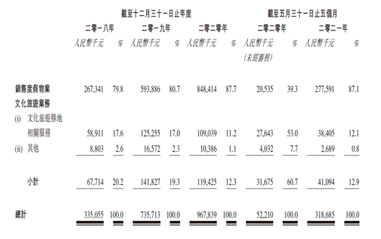 大湾区文旅的度假物业销售业务主要包括洋房、公寓、商业物业及空间,销售度假物业的收入逐年攀升,2018年至2020年分别为人民币2.67亿元、5.94亿元、8.48亿元,而2021年前五个月,销售度假物业的收入为2.78亿元,仅为2020年全年收益的33%。