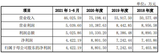 财务数据方面,2018年至2020年以及2021年上半年(下称“报告期”),拓山重工的营业收入分别为5.06亿元、5.59亿元、7.52亿元、4.6亿元,归母净利润分别为7403.86万元、7242.44万元、8801.5万元、4422.19万元。