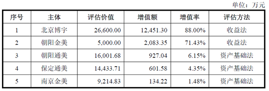 其中,公司对北京博宇和朝阳金美采用收益法评估,增资率分别为88%、71.43%,而对朝阳通美、保定通美和南京金美则采用资产基础法,增资率分别为6.15%、4.35%、1.48%。并在2020年12月29日匆匆完成此次重组。