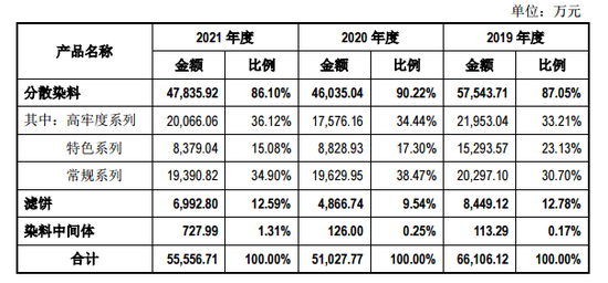 值得一提的是,此次IPO万丰股份计划用超65%的募资款扩产能,而事实却是报告期内公司产能利用率并不饱和。2019-2021年,公司营收占比超8成的分散染料商品的实际产量为8261.95万吨、8036.88万吨、8983.23万吨,对应的产能利用率分别为82.62%、80.37%、89.83%。