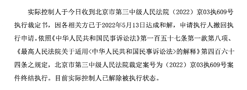 2022年5月20日,华谊兄弟再次发布公告,称实际控制人已解除被执行状态。