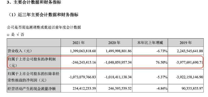 2022年4月28日,华谊兄弟公布2021年年度报告。年报显示,经审计净利润为亏损24,624.34 万元。虽然较2020年年度净亏损额下降了76.5%,但未达到此前业绩预告的“扭亏为盈”。