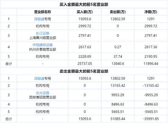 不过,和一般的公司重组前夕股价大涨相反,上周五银泰黄金却放量跌停。盘后龙虎榜数据显示,当日深股通专用席位买入1.51亿元并卖出1.38亿元,二机构净买入5190.67万元,三机构净卖出2.73亿元。