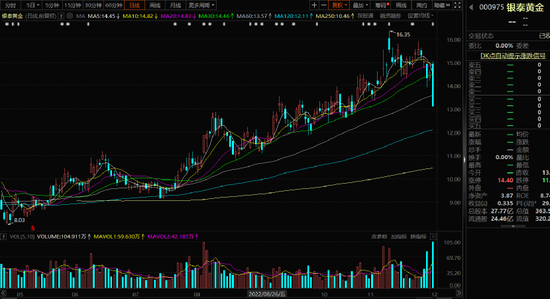 在此之前,银泰黄金股价一直震荡上行,但自11月28日起开始掉头下行。