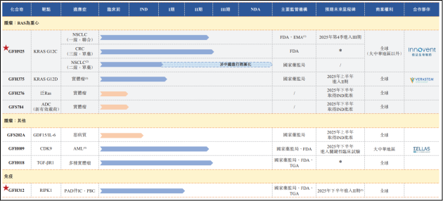 招股书显示,截至最后实际可行日期,劲方医药产品管线包括八款候选药品,其中五款处于临床开发阶段。在研管线中,核心产品GFH925(fulzerasib,商品名达伯特®)为小分子选择性KRAS G12C蛋白抑制剂,用于二线治疗晚期非小细胞肺癌,2024年8月已于国内获批上市。